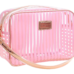 This Beauty Bag comes in three separate colours, all transparent with either pink, white, or black stripes with gorgeous rose gold detailing and a convenient strap. Why not take this opportunity to get one of each?