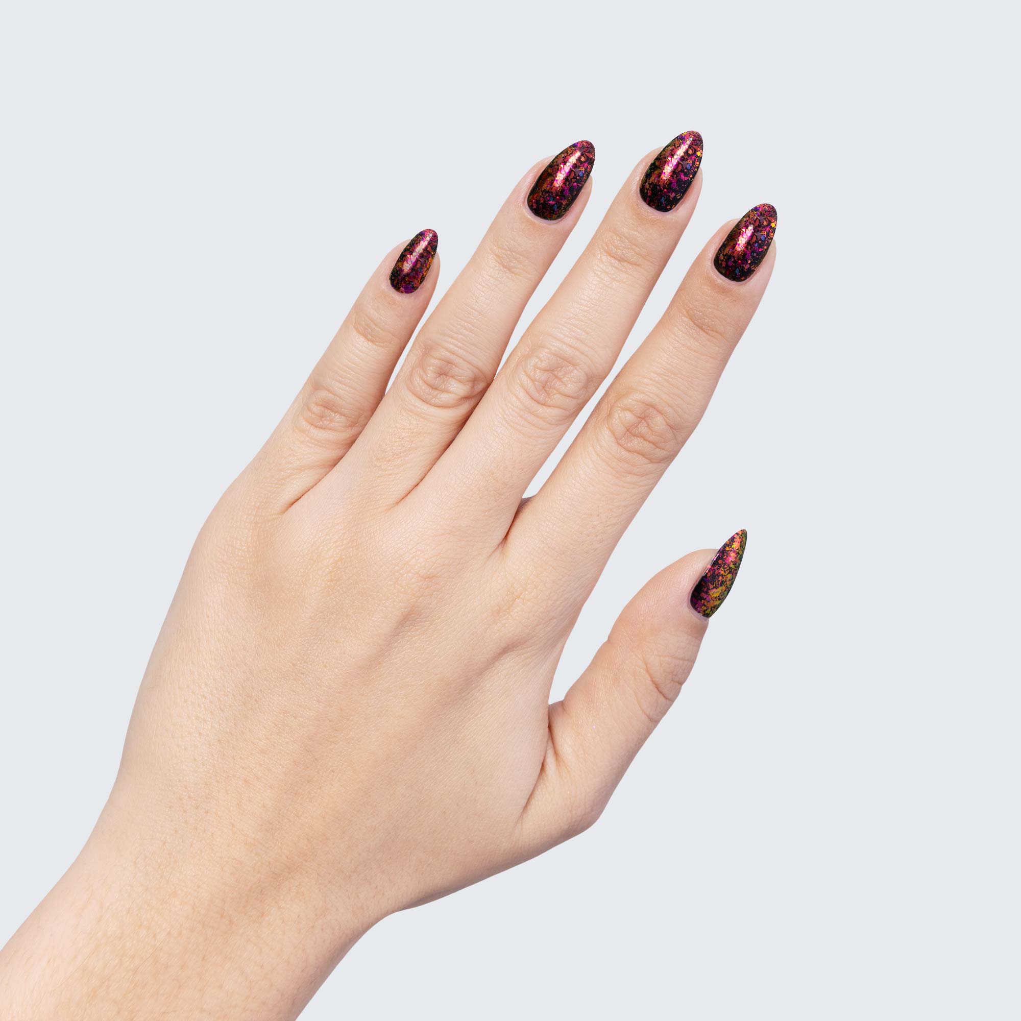 The ethereal allure of PRECIOUS FLAKES makes them a marvelous choice for manicures whose beauty can outreach any stretch of imagination. Because they are semi-translucent, each individual colour scheme takes on surprisingly varied hues depending on which gel polish you use as a base.